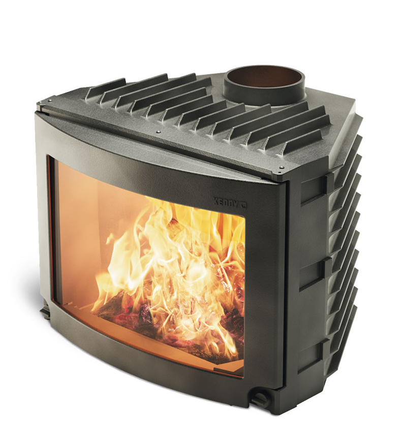 Förbränningsluften förvärms i luftkanaler i spiskassettens sidor. Vi har i vårt snart blivande hus en öppen spis. Keddy är byggd i de bästa materialen. Jag funderar på att installera en kassett för att få lite verklig effekt av eldningen och inte bara.
